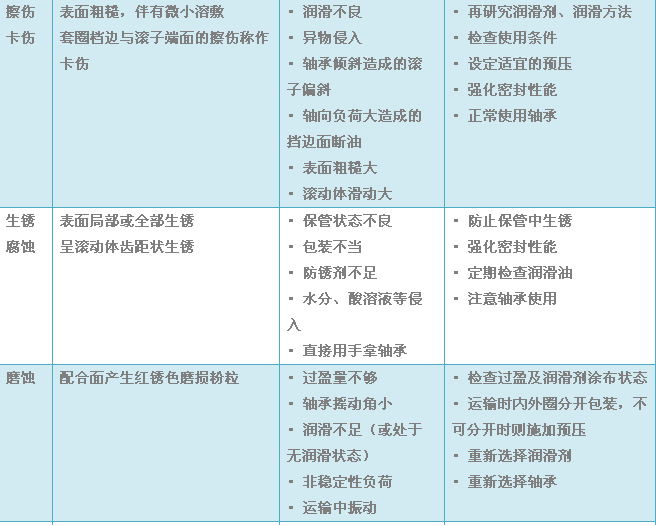 軸承在正確的使用下可以有很長的壽命,如果過早的出現(xiàn)損傷,很可能是因?yàn)檫x型錯(cuò)誤,使用不當(dāng)或潤滑不良造成的。