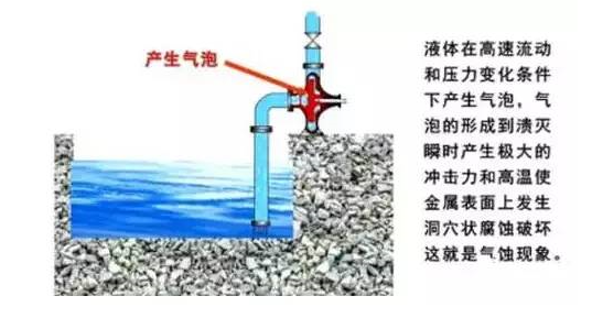 含氣泡的液體擠入高壓區(qū)后急劇凝結(jié)或破裂。因氣泡的消失產(chǎn)生局部真空,周圍的液體就以極高的速度流向氣泡中心,瞬間產(chǎn)生了極大的高達(dá)幾萬kpa的高速沖擊力,造成對葉輪和泵殼的沖擊,使材料受到侵蝕和破壞。