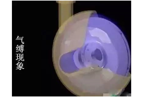 汽蝕發(fā)生時將產(chǎn)生大量空泡,水中含有大量空泡時,破壞了水流的正常規(guī)律,使葉槽有效過流面面積減小,流動方向隨之改變,能量損失增大,從而引起水泵流量、揚程和效率的迅速下降,汽蝕嚴(yán)重時甚至?xí)霈F(xiàn)斷流。