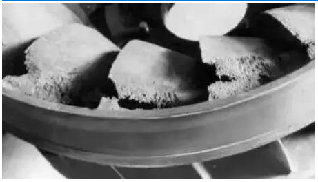 氣泡潰滅時,液體質(zhì)點互相撞擊,同時也撞擊金屬表面,產(chǎn)生各種頻率的噪聲,嚴(yán)重時可聽見泵內(nèi)有“劈啪”的爆炸聲,同時引起機(jī)組振動。葉輪局部在巨大沖擊的反復(fù)作用下,表面出現(xiàn)斑痕及裂紋,甚至呈海綿狀逐漸脫落,降低了泵使用壽命。