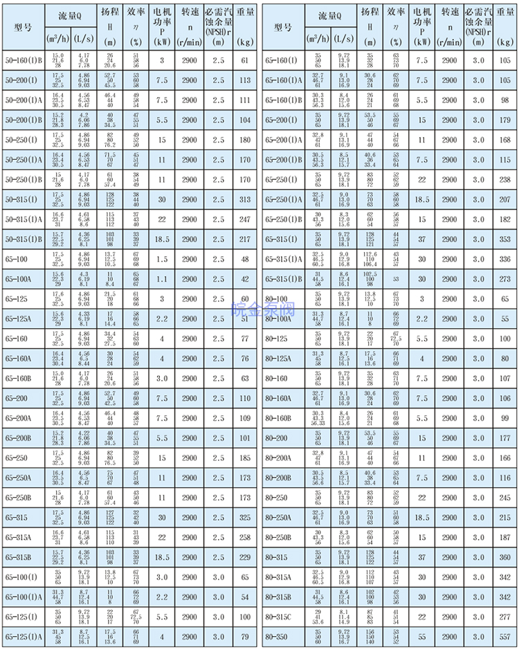 皖金泵閥立式管道離心泵主要參數: