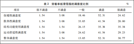 接下來(lái)作者從“保暖性滿意度”、“散熱性滿意度”、“結(jié)構(gòu)功能使用滿意度”、“運(yùn)動(dòng)舒適性滿意度”、“整體滿意度”五個(gè)方面對(duì)消費(fèi)者滿意度進(jìn)行了調(diào)查。情況如下: