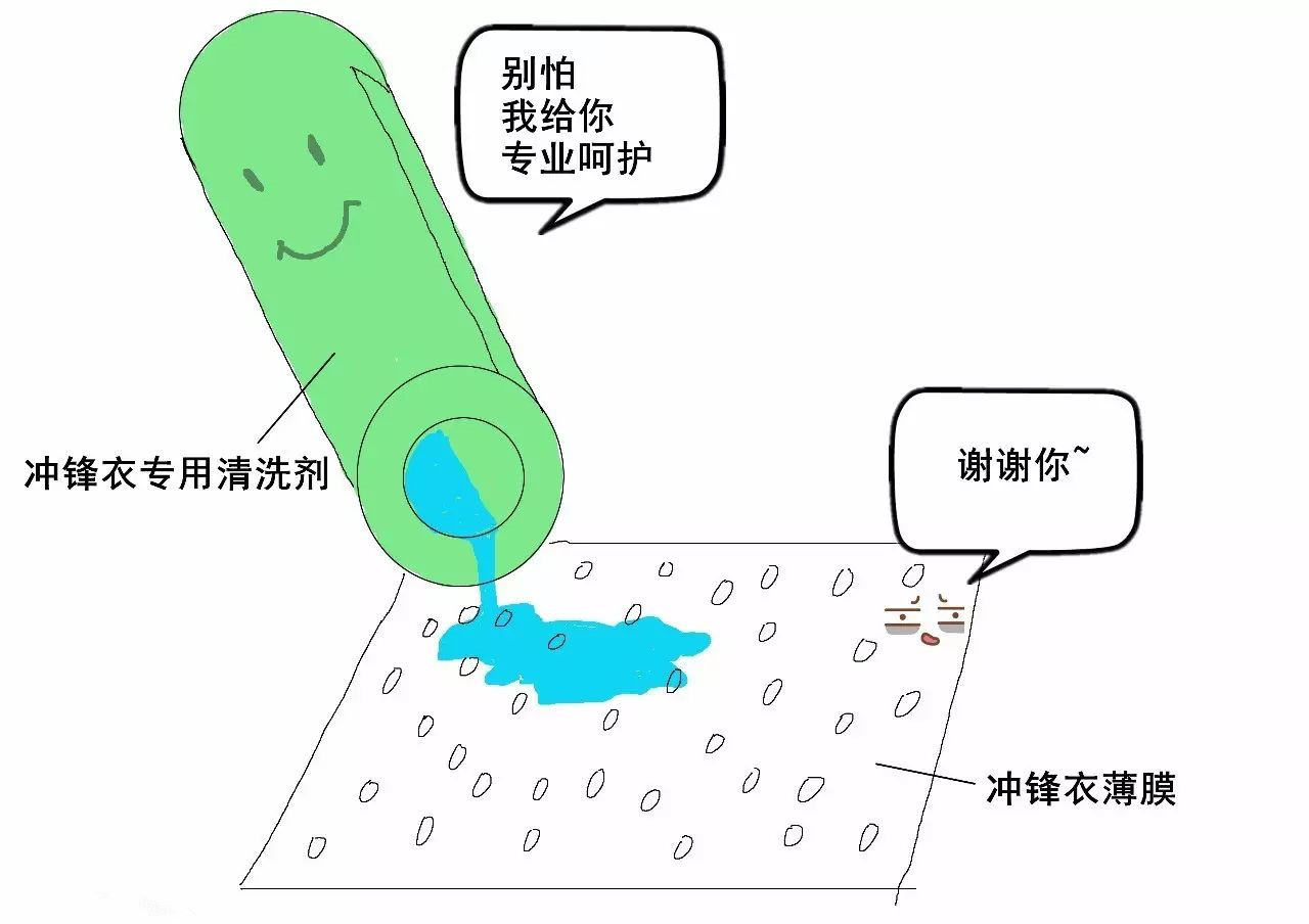 由于薄膜上的小孔很細微,普通衣物清洗劑本身也可能堵塞薄膜,也就是把昂貴的沖鋒衣洗壞了。