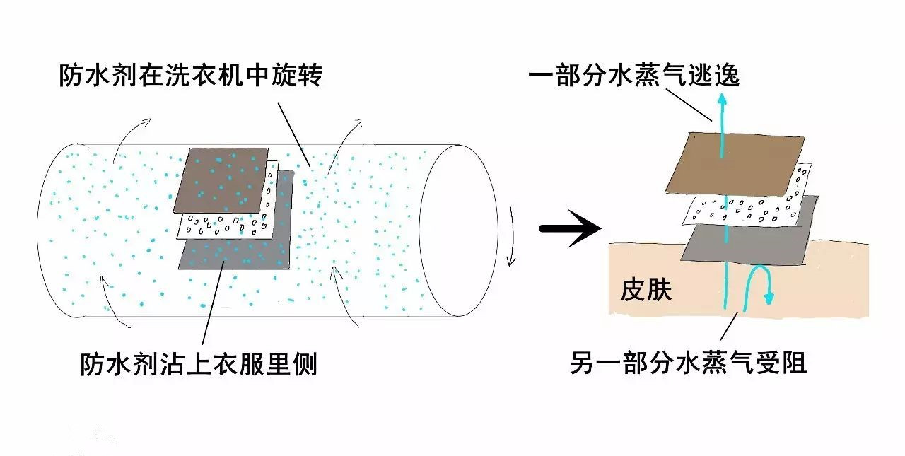 ·     沖鋒衣一段時間后防水透氣失效的原因是,涂層的磨損和薄膜的失效。