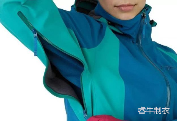 多數(shù)沖鋒衣都有設(shè)計(jì)在腋下散熱拉鏈的,它的作用是讓使用者在戶(hù)外活動(dòng)中,根據(jù)實(shí)際使用情況調(diào)節(jié)服裝內(nèi)的溫度。對(duì)于專(zhuān)業(yè)沖鋒衣來(lái)說(shuō),拉鏈一般都采用防水功能的產(chǎn)品。而滑雪服因?yàn)槠溥\(yùn)動(dòng)的特點(diǎn),一般是把拉鏈設(shè)計(jì)在胸口附近或者上肢的前方。和沖鋒衣的相同的是?;┓母邫n產(chǎn)品也使用防水拉鏈。