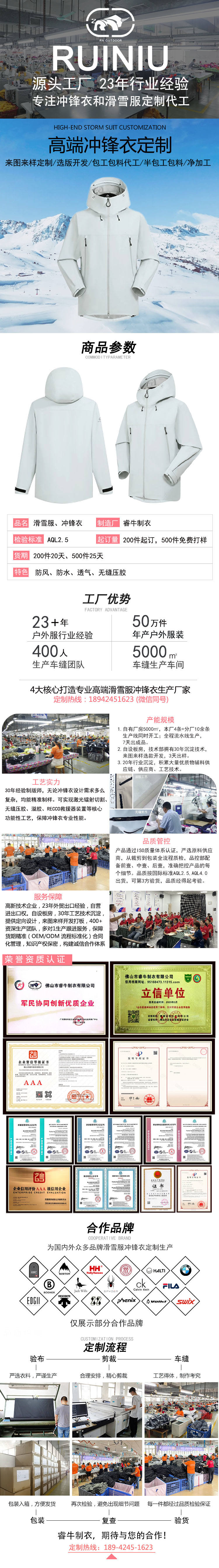 高端壓膠沖鋒衣定制 擁有專業(yè)生產(chǎn)設(shè)備,400+資深生產(chǎn)團(tuán)隊(duì)